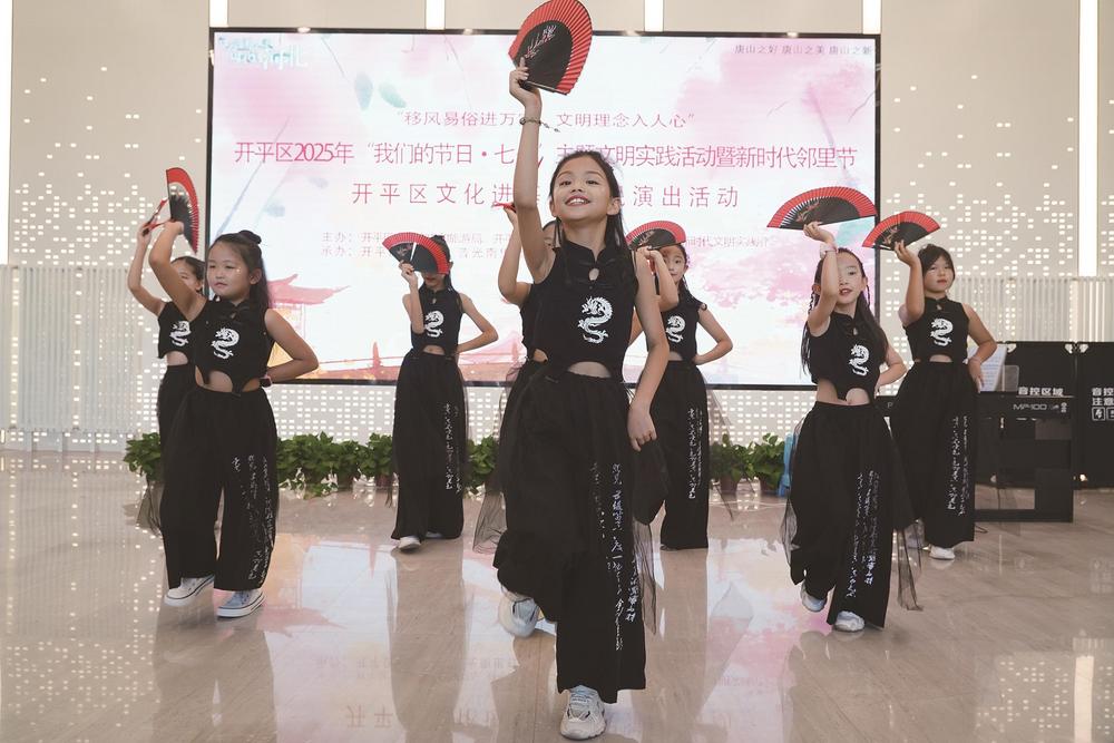 8月22日,开平区开平街道办事处在开平区文化馆组织开展“我们的节日·七夕”主题文明实践活动暨新时代邻里节文化进基层惠民演出活动。舞蹈《城里的月光》《大地》、钢琴独奏《往事难忘》《秋千》、独唱《爱在人间》等节目轮番上演,为辖区居民献上家门口的文化盛宴。 本报记者 郝燕 通讯员 马靖轶 江宏 摄