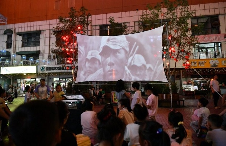 图为群众观看露天电影,感受抗战历史。杨硕摄