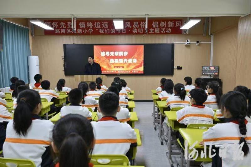 图为“中国好人”郑毅走进路南区双新小学进行宣讲。(资料图)