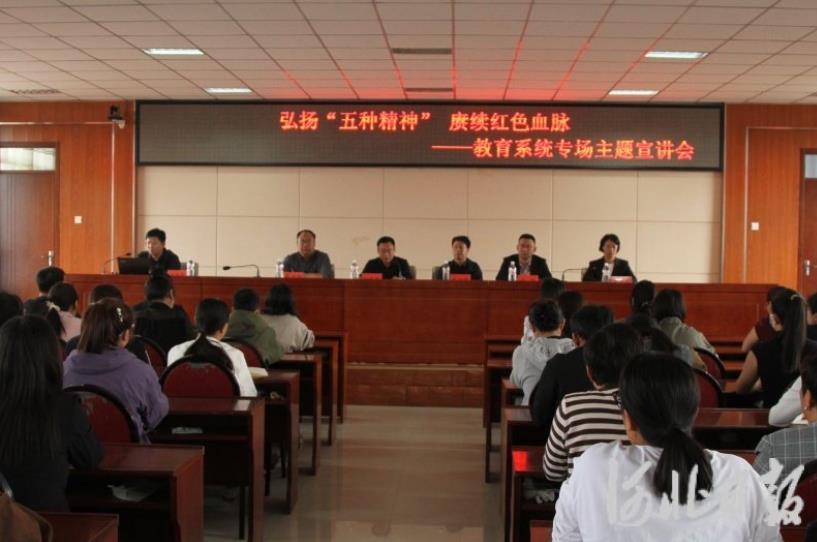 河北日报客户端9月23日讯(金张宇)今天,河北省滦南县委宣传部联合县教育局举行“弘扬‘五种精神’ 赓续红色血脉”教育系统专场主题宣讲会。县委宣传部、县教育局工作人员,县各高中(含职教中心)、初中、县直小学、幼儿园、特教学校代表等100余人参加。