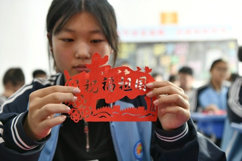 厚植爱国主义情怀,传承优秀传统文化。9月25日,河北省迁安市杨店子街道初级中学开展“欢度国庆、浓情中秋”非遗剪纸进校园活动。