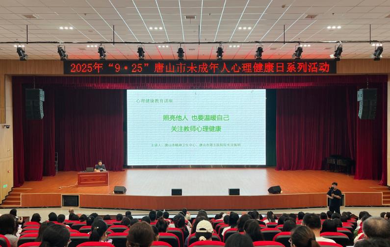 在唐山市第十中学举办的心理健康教育专题讲座中,唐山市精神卫生中心、唐山市第五医院院长沈振明以《照亮他人 也要温暖自己——关注教师心理健康》为题,为教育工作者开展心理调适与自我关怀辅导讲座,来自全市各县(市、区)及市直学校的316名教师现场聆听。